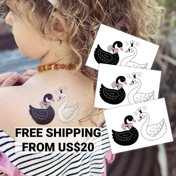Swans Temporary Tattoo Transfers Black And White Swan Etsy